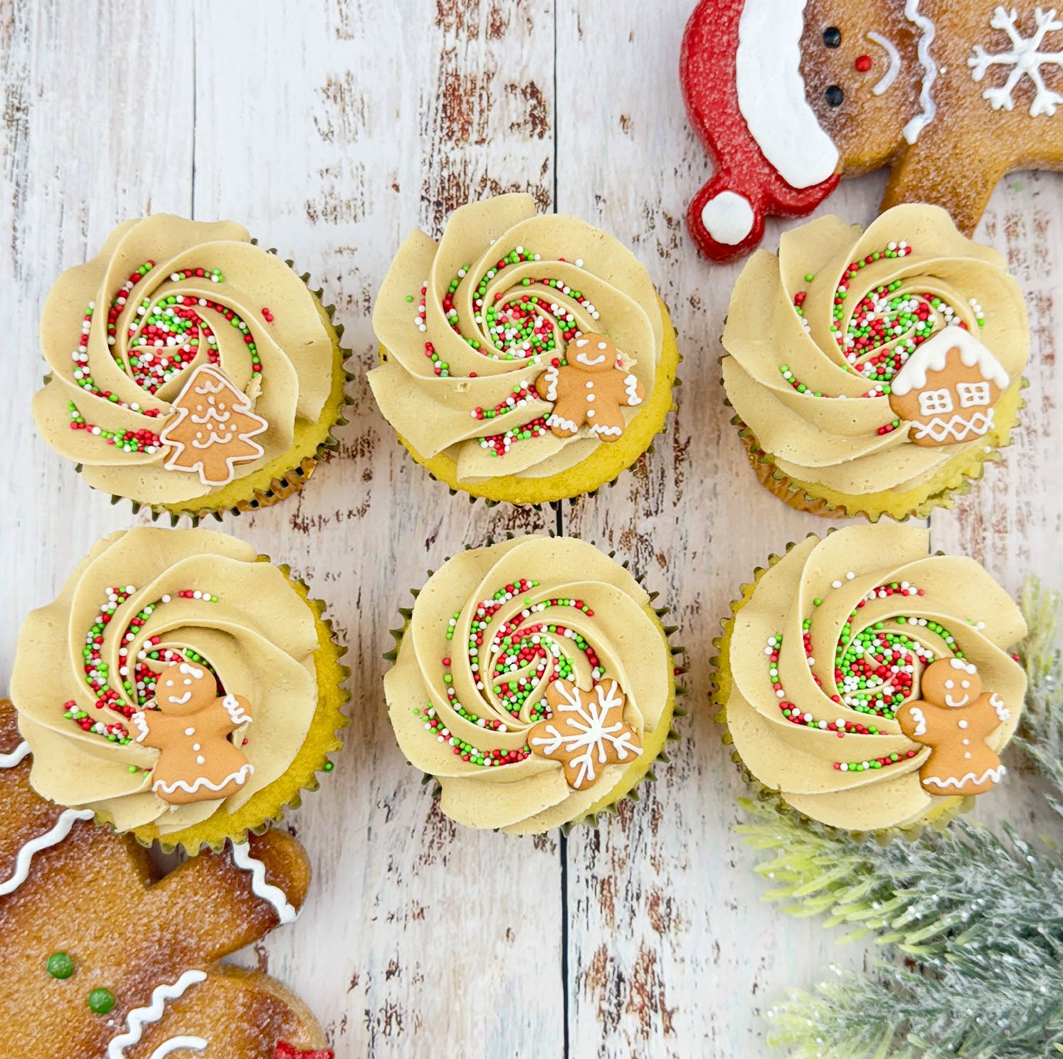 The gingerbread folk gather to celebrate with laughter, dancing, and sweet treats by the fireside. Our Gingerville Cupcakes bring that story to life with rich ginger buttercream and charming festive sugar decorations — a delicious taste of Christmas wonder.