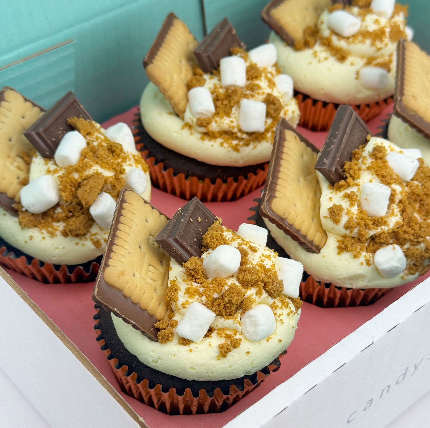 All cupcakes are topped with a piece of Hershey's, Marshmallows, Biscoff crumbs and a Milk Chocolate biscuit
