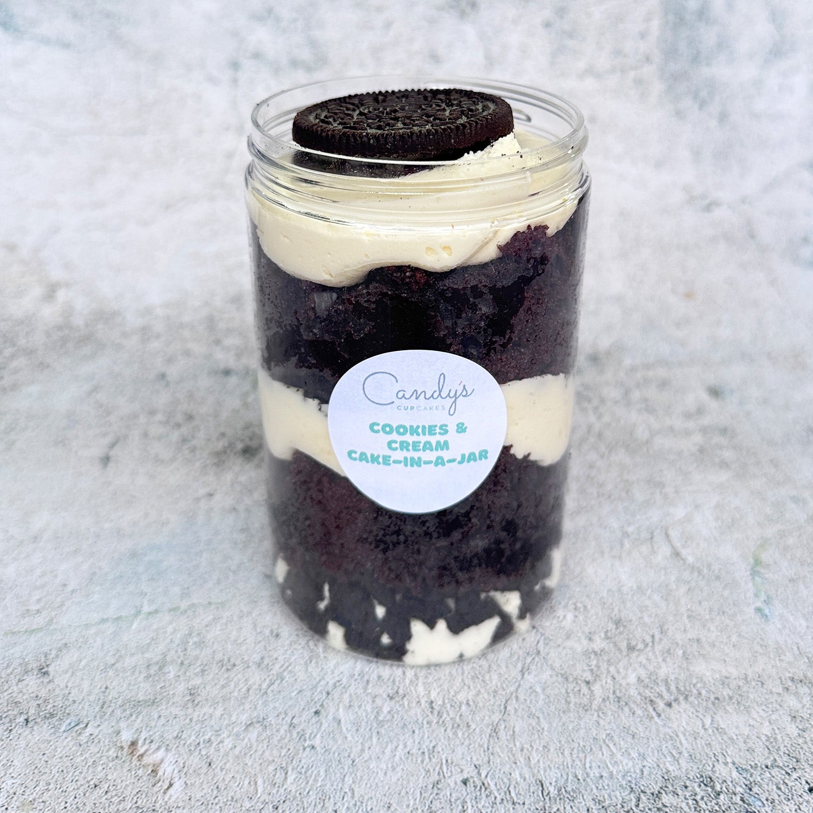 - 1x Cookies & Cream Cake-in-a-Jar - Chocolate sponge, vanilla buttercream, Oreos