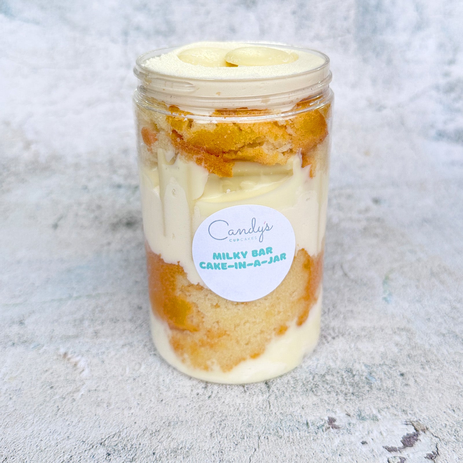 - 1x Milkybar Cake-in-a-Jar - Vanilla sponge, white chocolate buttercream, white chocolate sauce, Milkybar