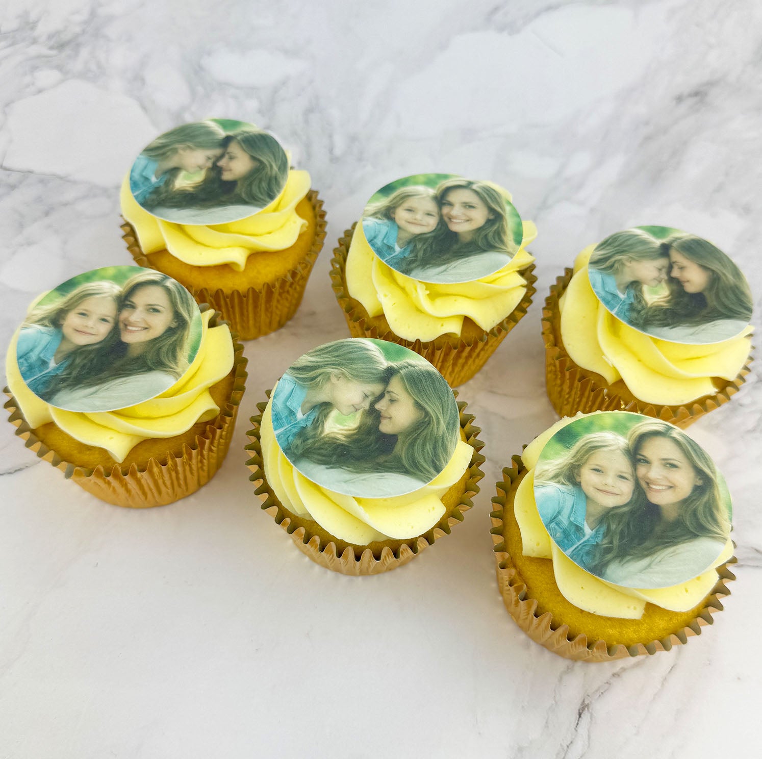 Want a personal touch to your cupcakes? Our freshly baked handmade vegan and gluten-free vanilla cupcakes can be topped with an edible photo and message.