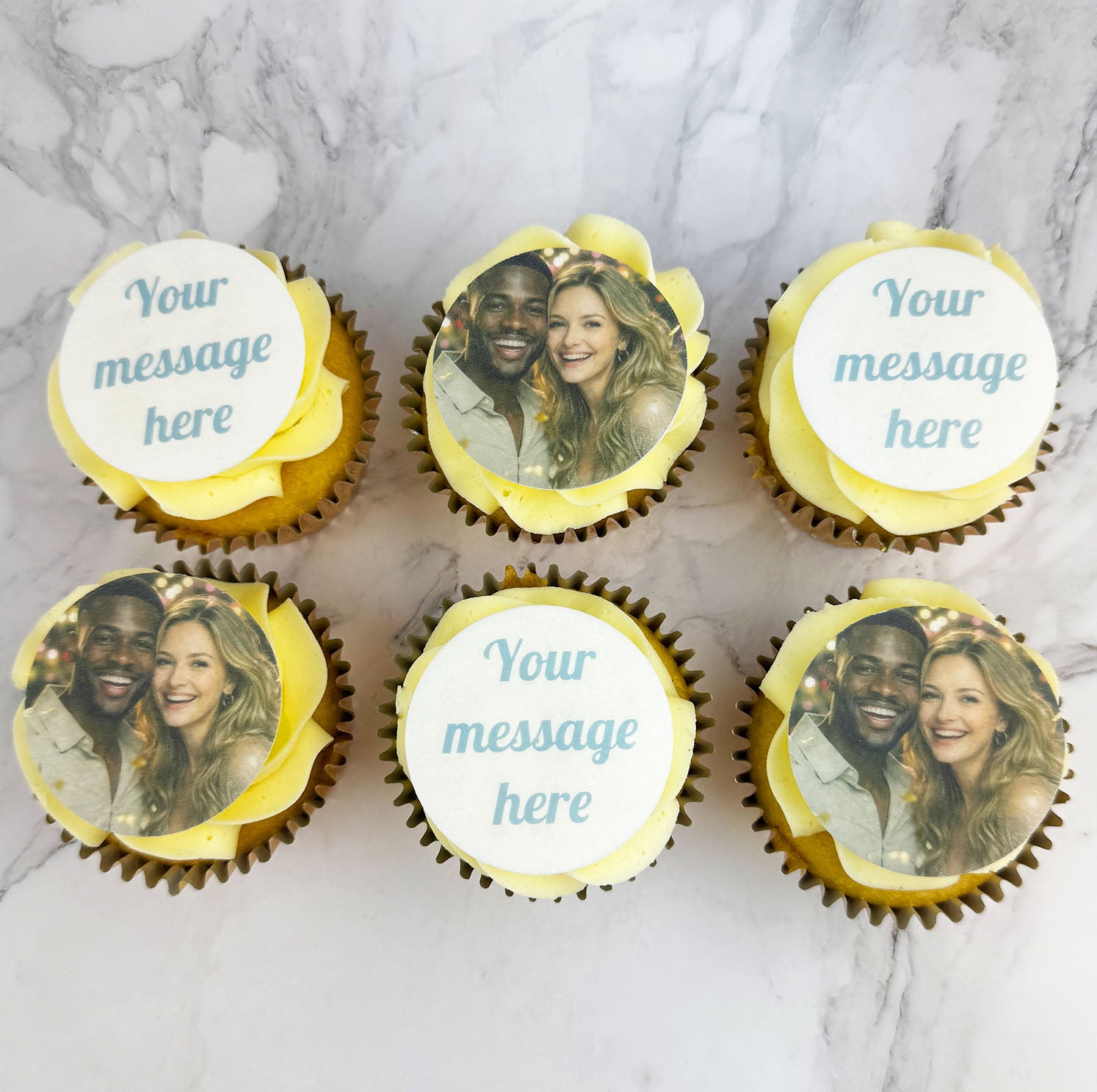 Simply upload a photo, add your own message, and choose your cupcake sponge flavour and flavour buttercream topping. The perfect gift for any occasion.